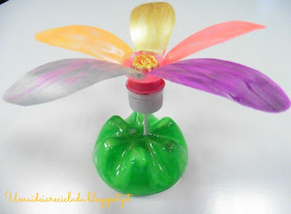 Mas como gostava de fazer uma árvore que fosse diferente e que fosse desmontável, utilizei as técnicas da estrela de Natal e da estrela de Natal 2, ou seja, cortei os fundos a todas as garrafas, e cortei as garrafas em tiras até ao gargalo de cada uma.