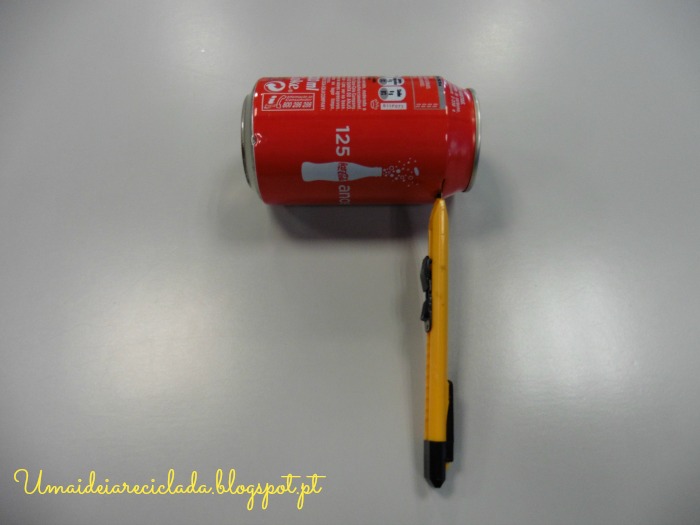 Com a tesoura cortamos a lata em tiras mais ou menos iguais.